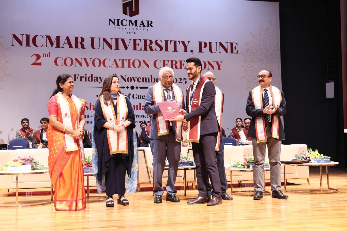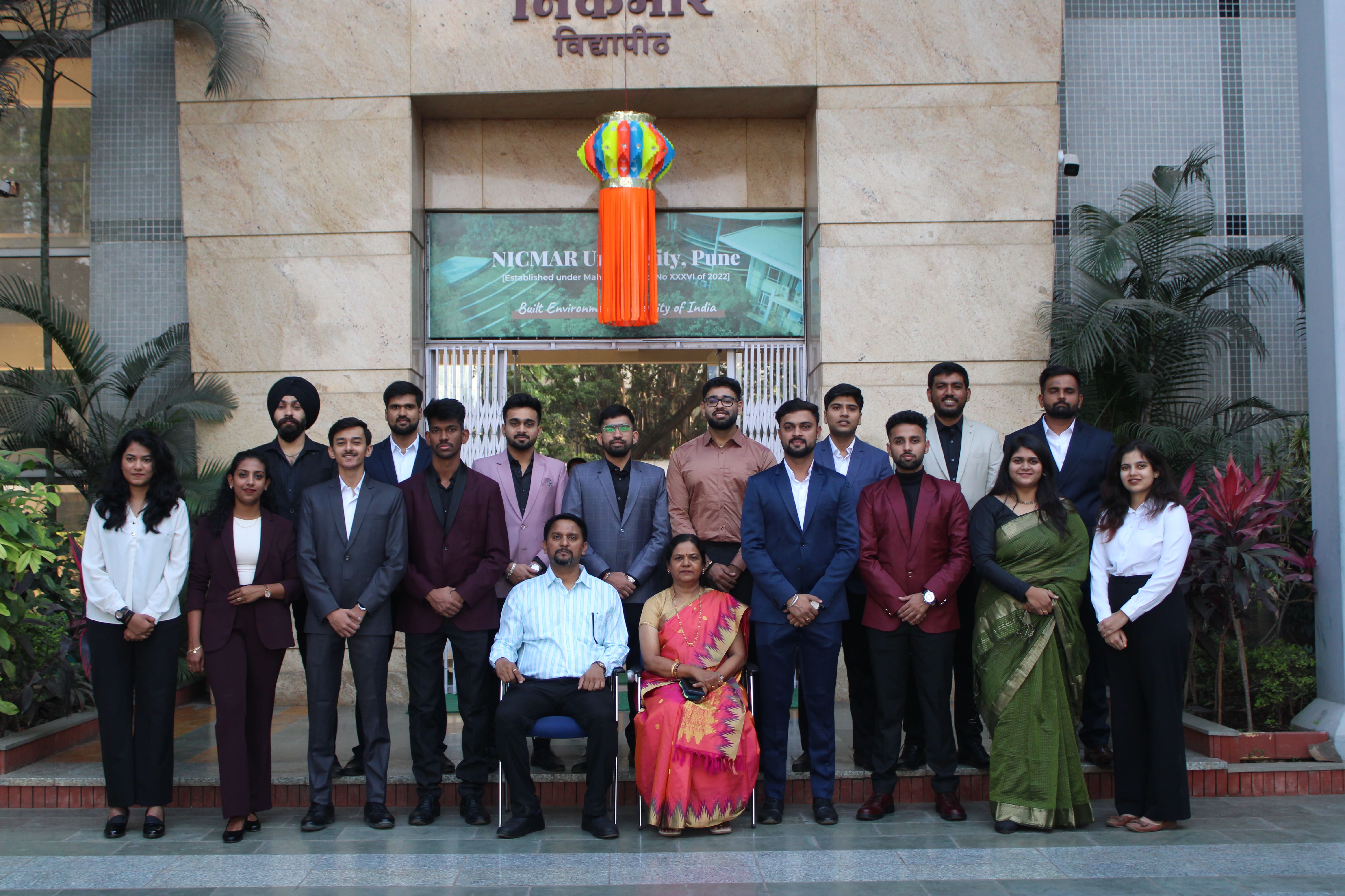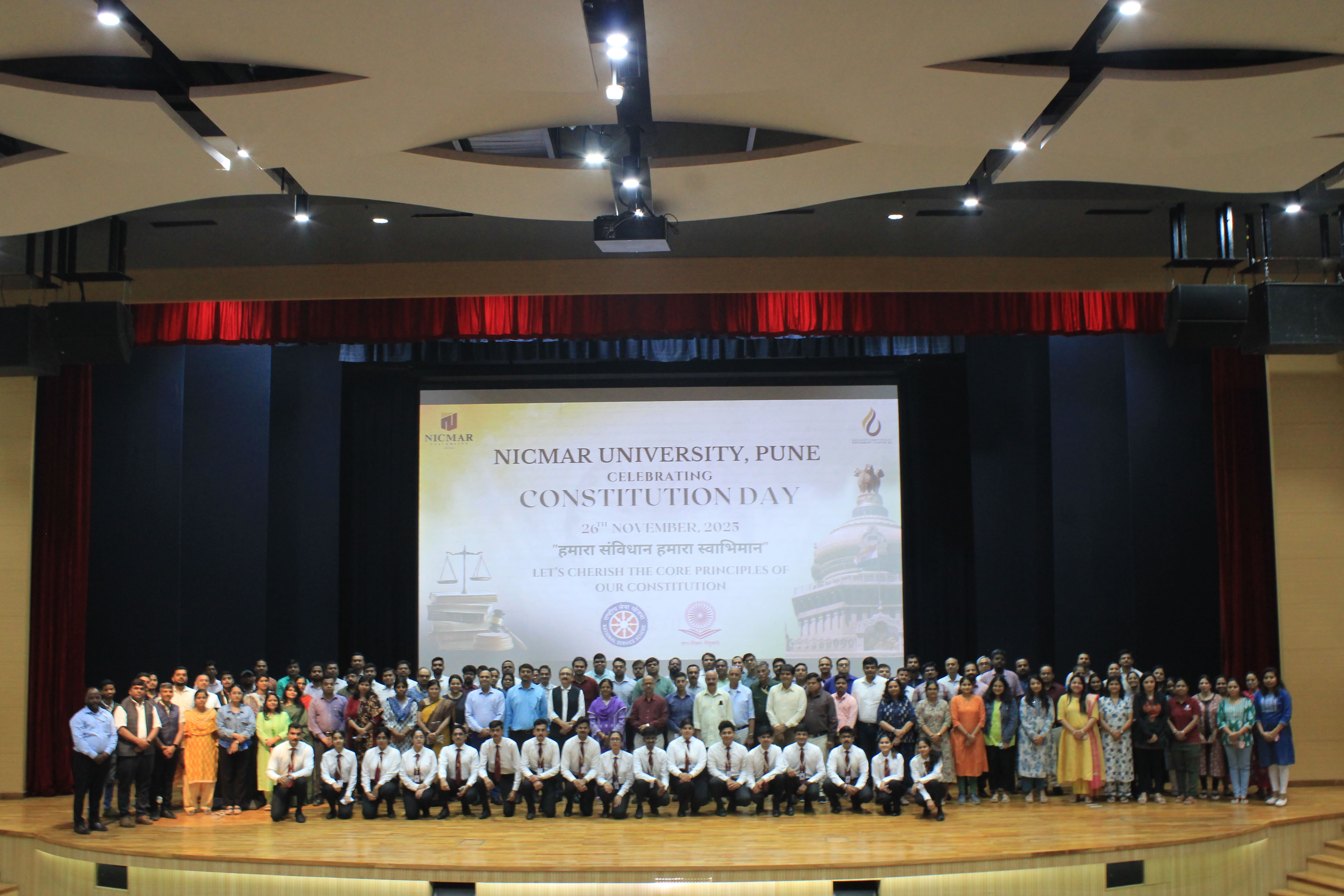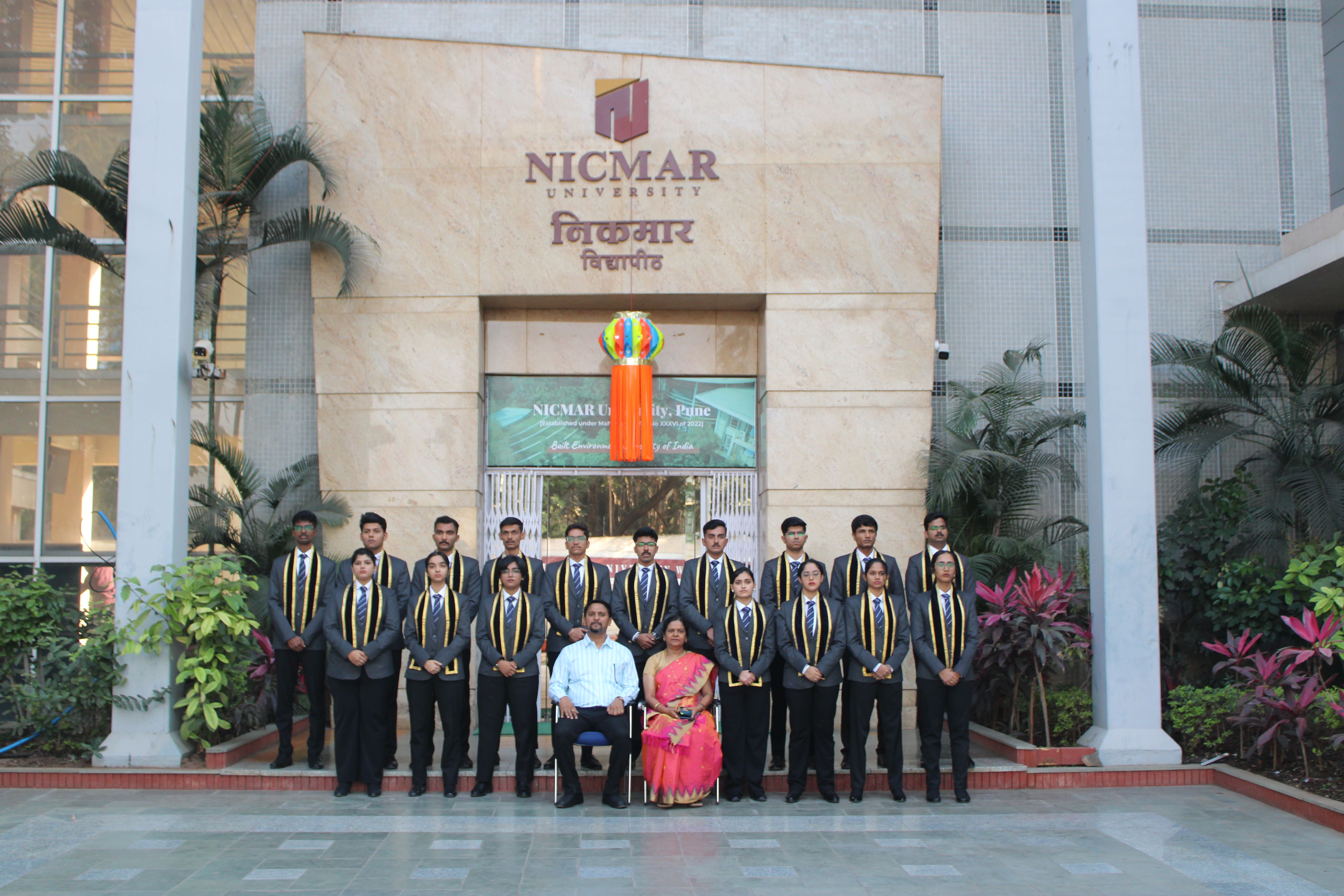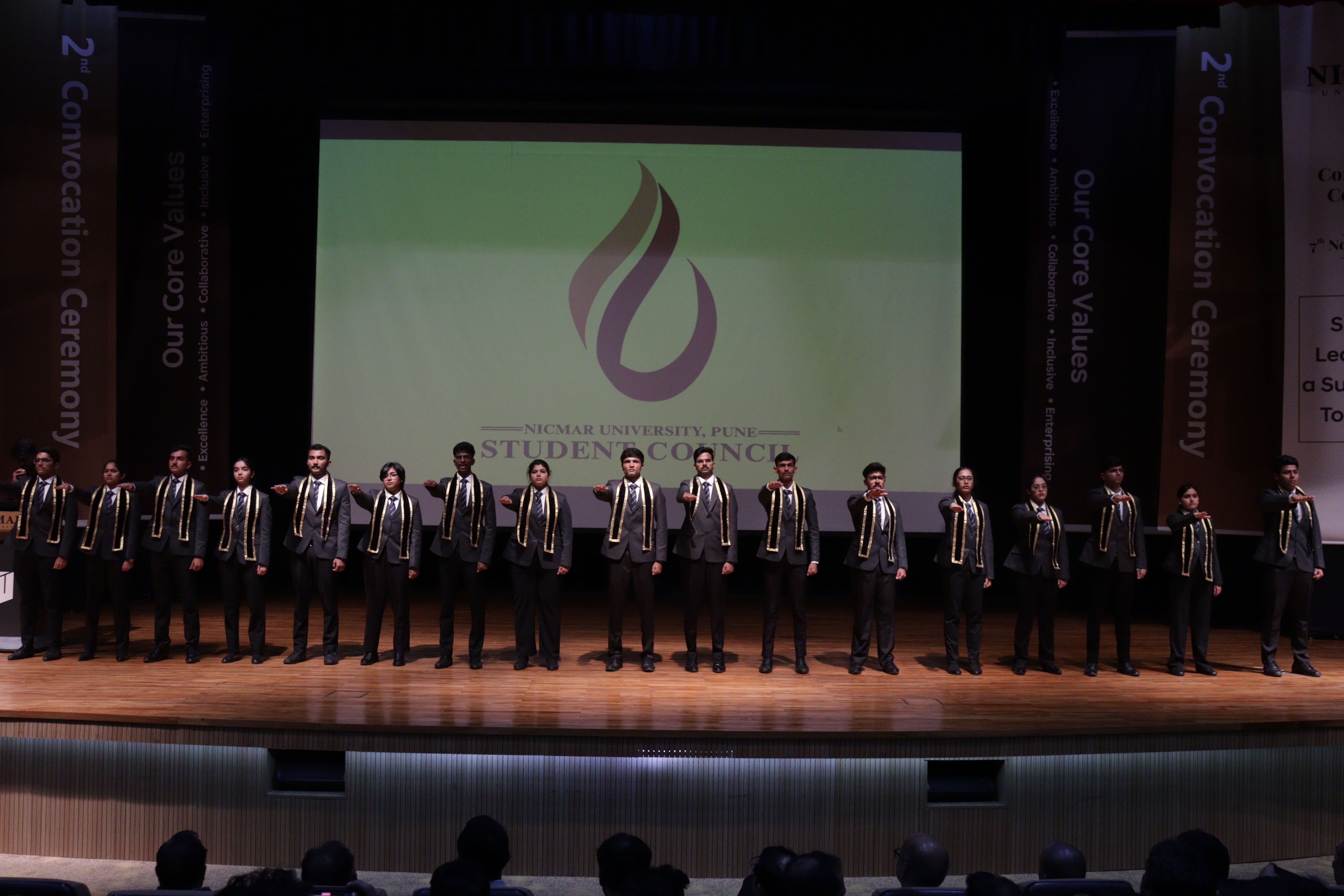 The Oath-Taking Ceremony for the Student Council 2025-26, was held on 13th November, 2025 at NICMAR University, Pune. The event marked the formal handover of responsibilities from the outgoing Student Council to the newly appointed Student Council. The Sash Exchange signified the handover of duties, followed by the official oath taken by each member, led by the Student Coordinator of 2024–25. The event was held in presence of Vice Chancellor, Dr. Mrs. Sushma S. Kulkarni; Dr. Anil Agarwal, Dean, Academics; Dr. Prashant Dave, Registrar; Dr. Darshan Mahajan, Dean, Student Affairs, along with other respected Deans and faculty members.