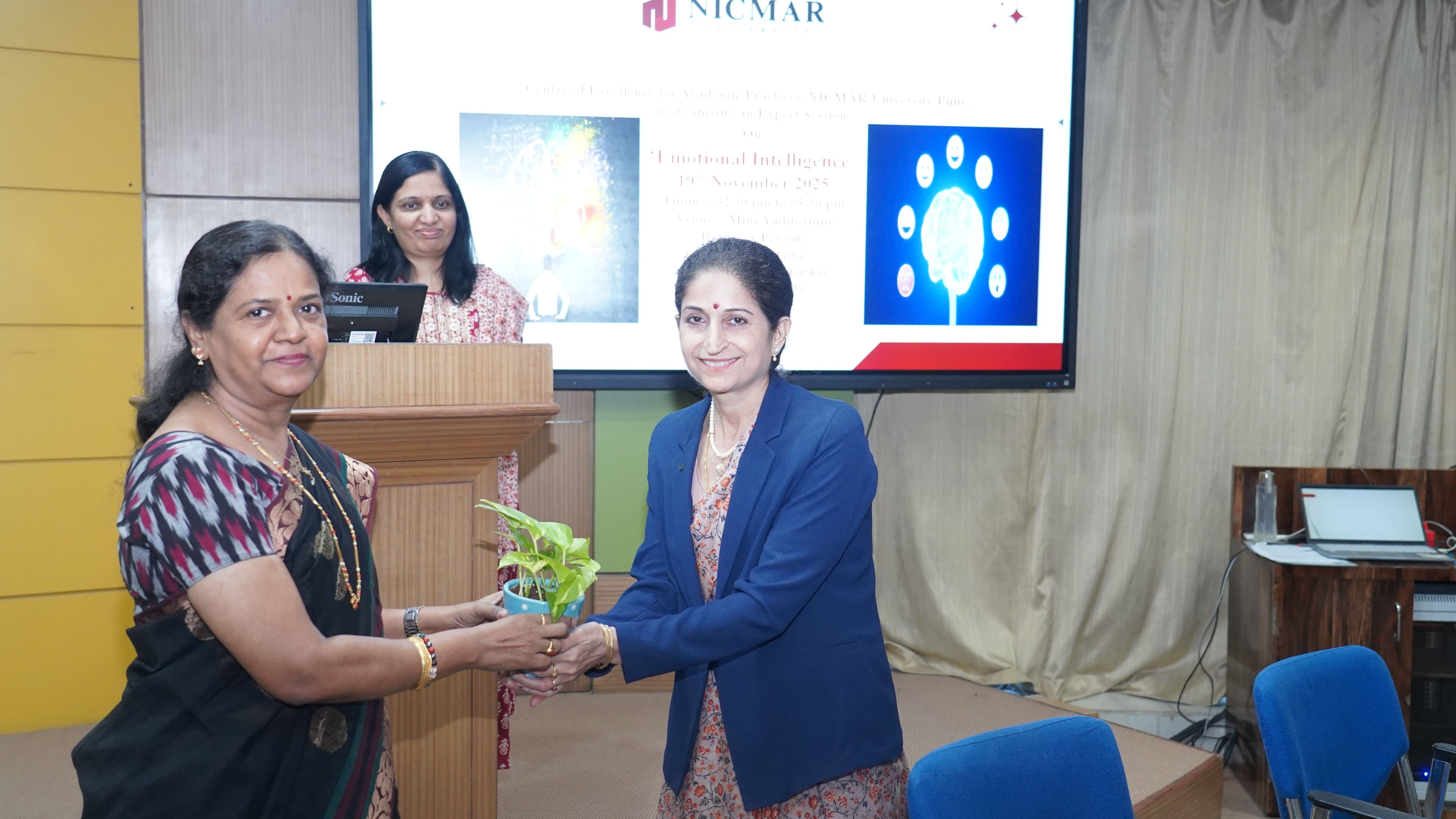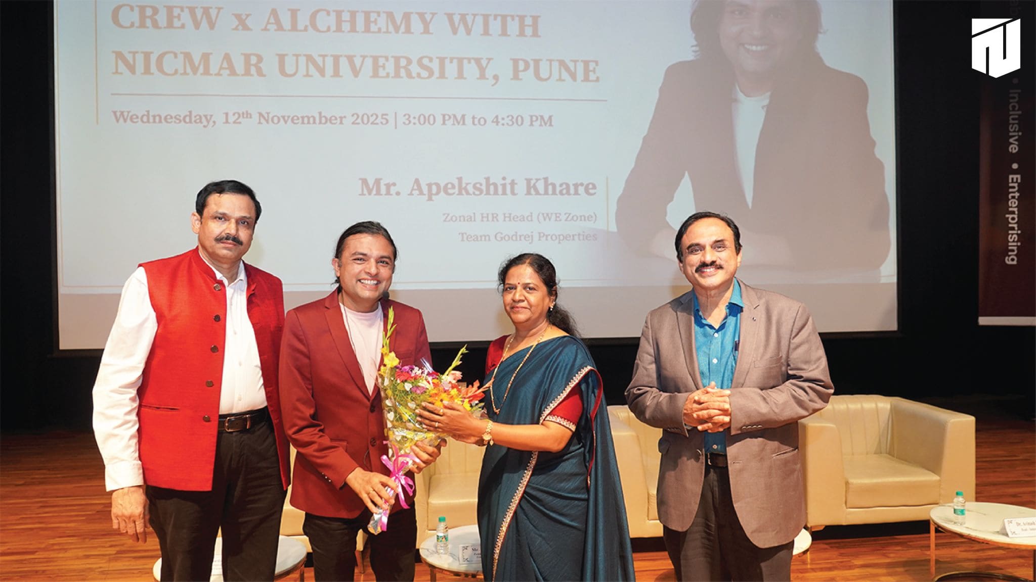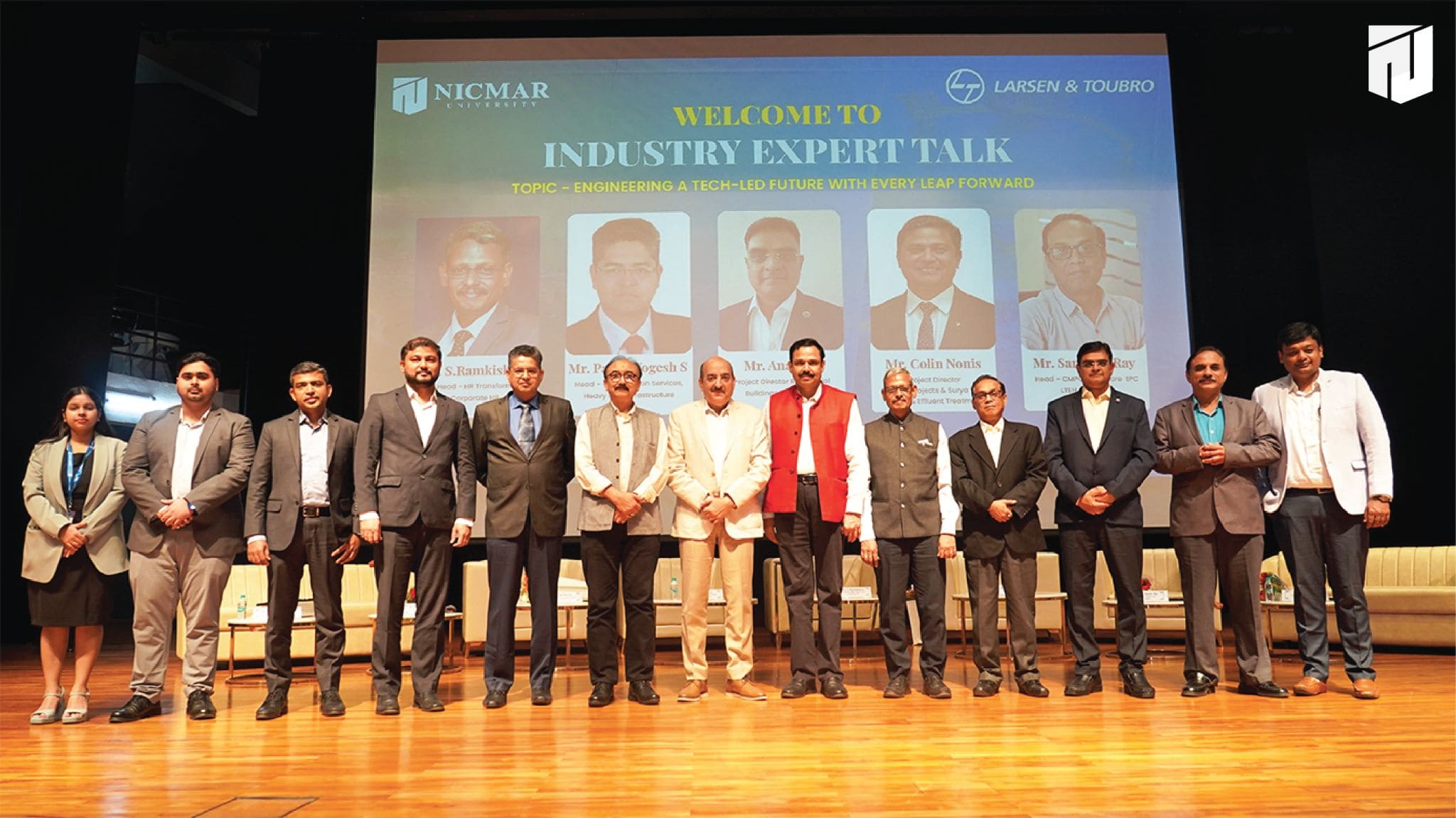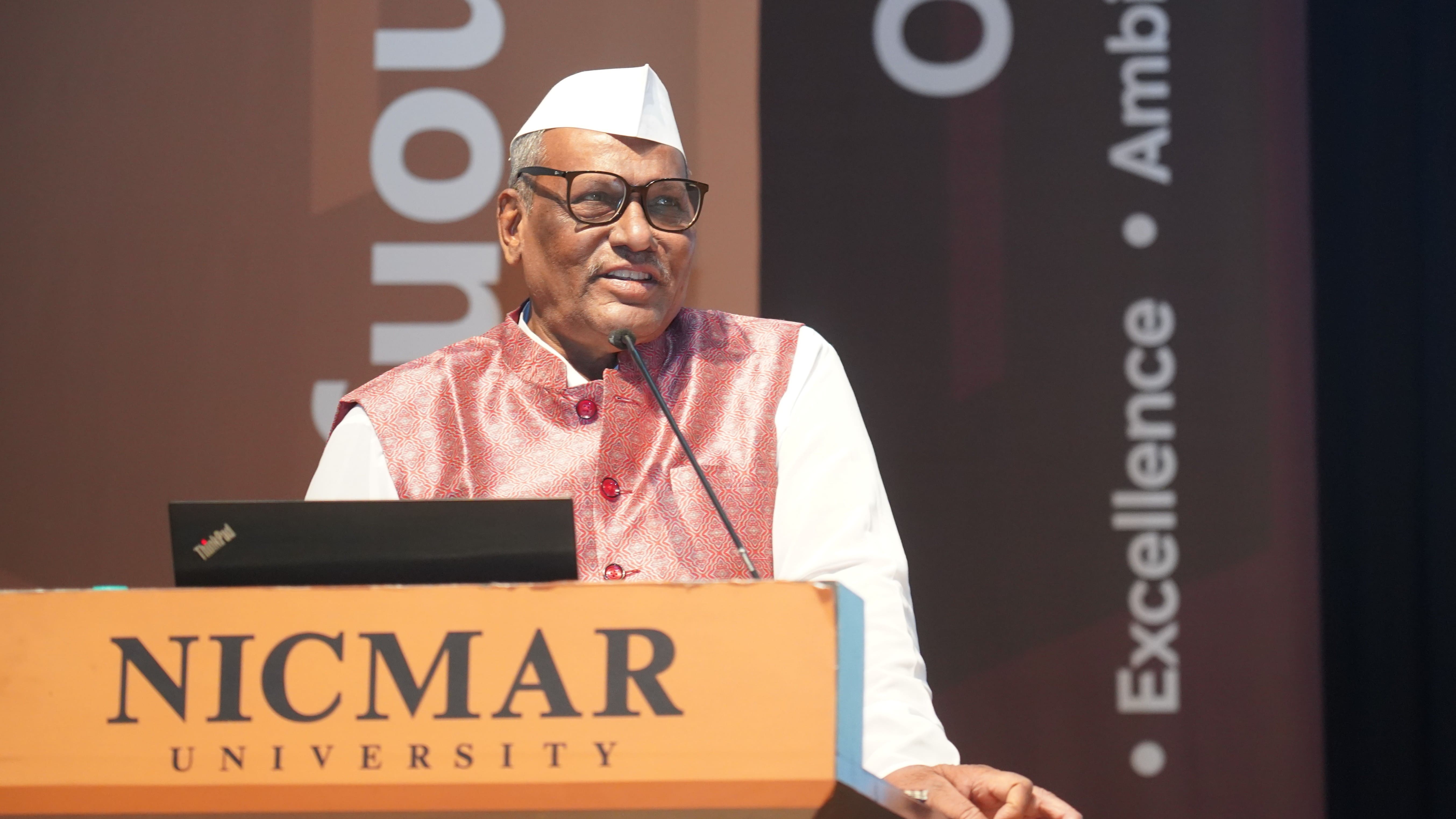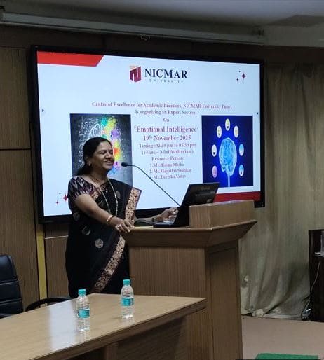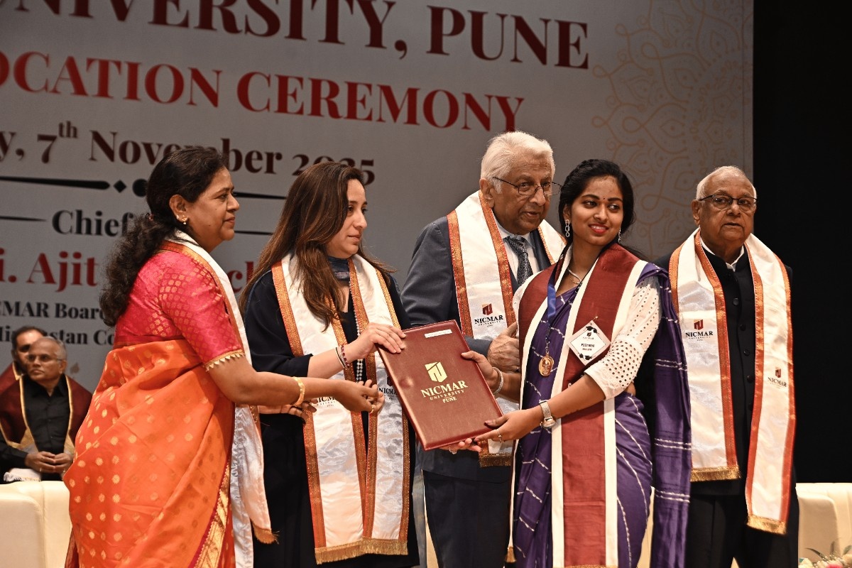 The Oath-Taking Ceremony for the Student Council 2025-26, was held on 13th November, 2025 at NICMAR University, Pune. The event marked the formal handover of responsibilities from the outgoing Student Council to the newly appointed Student Council. The Sash Exchange signified the handover of duties, followed by the official oath taken by each member, led by the Student Coordinator of 2024–25. The event was held in presence of Vice Chancellor, Dr. Mrs. Sushma S. Kulkarni; Dr. Anil Agarwal, Dean, Academics; Dr. Prashant Dave, Registrar; Dr. Darshan Mahajan, Dean, Student Affairs, along with other respected Deans and faculty members.