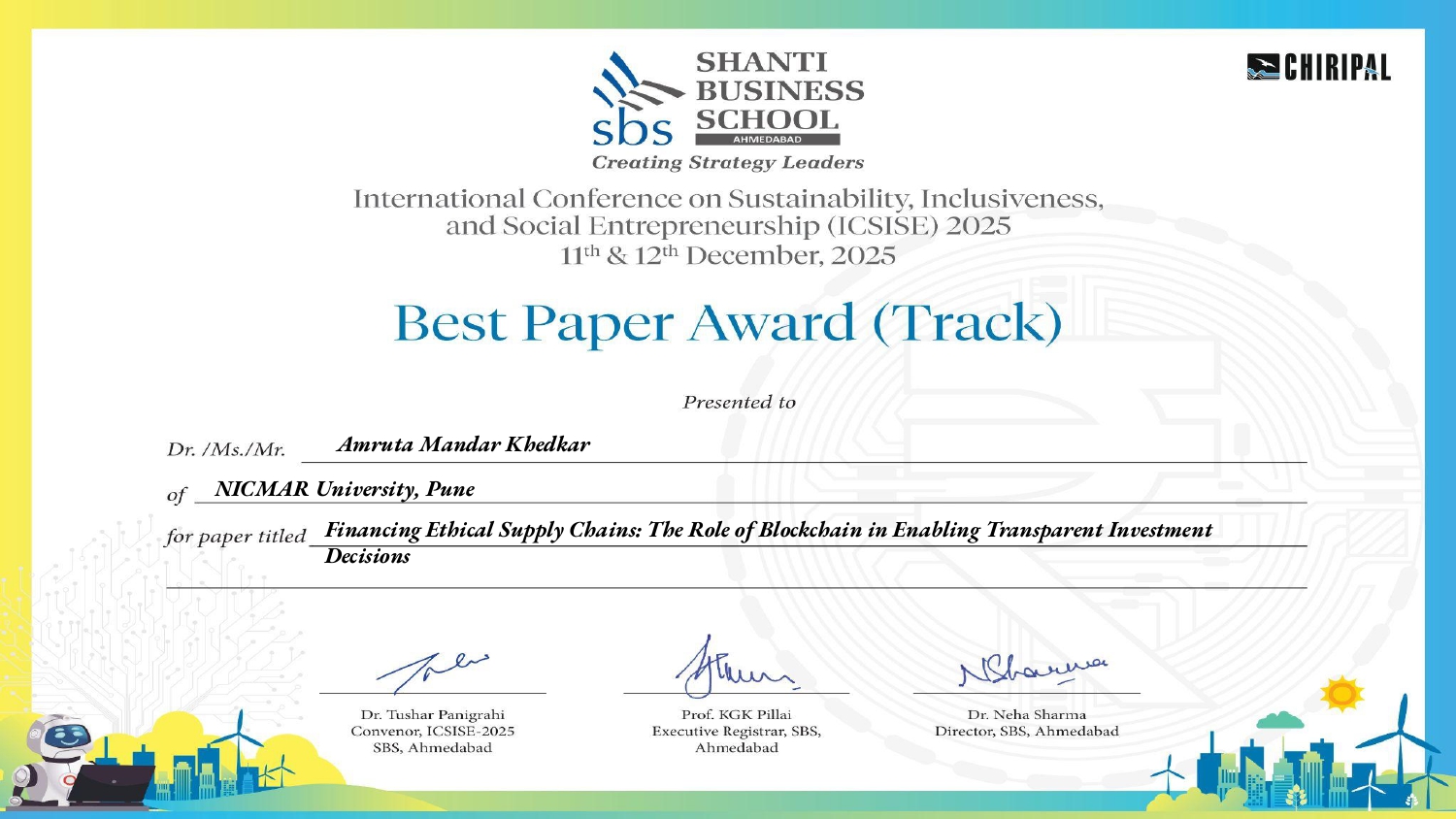 Vighnesh: How do you see NICMAR University strengthening academic quality,