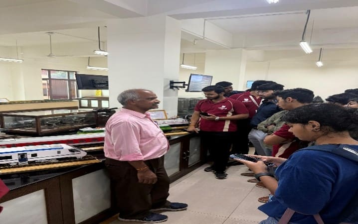 As part of the Transportation Engineering-II course, B.Tech Civil Engineering students visited the Indian Railways Institute of Civil Engineering (IRICEN), Pune on 13th September 2025. Established in 1959, IRICEN is a premier training institute of Indian Railways, dedicated to advancing knowledge in railway civil engineering. During the visit, students gained valuable insights into railway curves, turnouts, superelevation, permanent way components, fixtures, points and crossings, signalling systems, and railway bridges. They also explored advanced geotechnical and material testing laboratories, linking classroom concepts to real-world practices. A highlight of the visit was the tour of IRICEN’s award-winning green building, the only institutional building in India to achieve a 5-star GRIHA rating, an IBC award for innovation, and a Platinum LEED certification. The visit proved to be a rich learning experience, helping students connect theoretical knowledge with practical railway engineering applications while also inspiring them with sustainable design practices.
